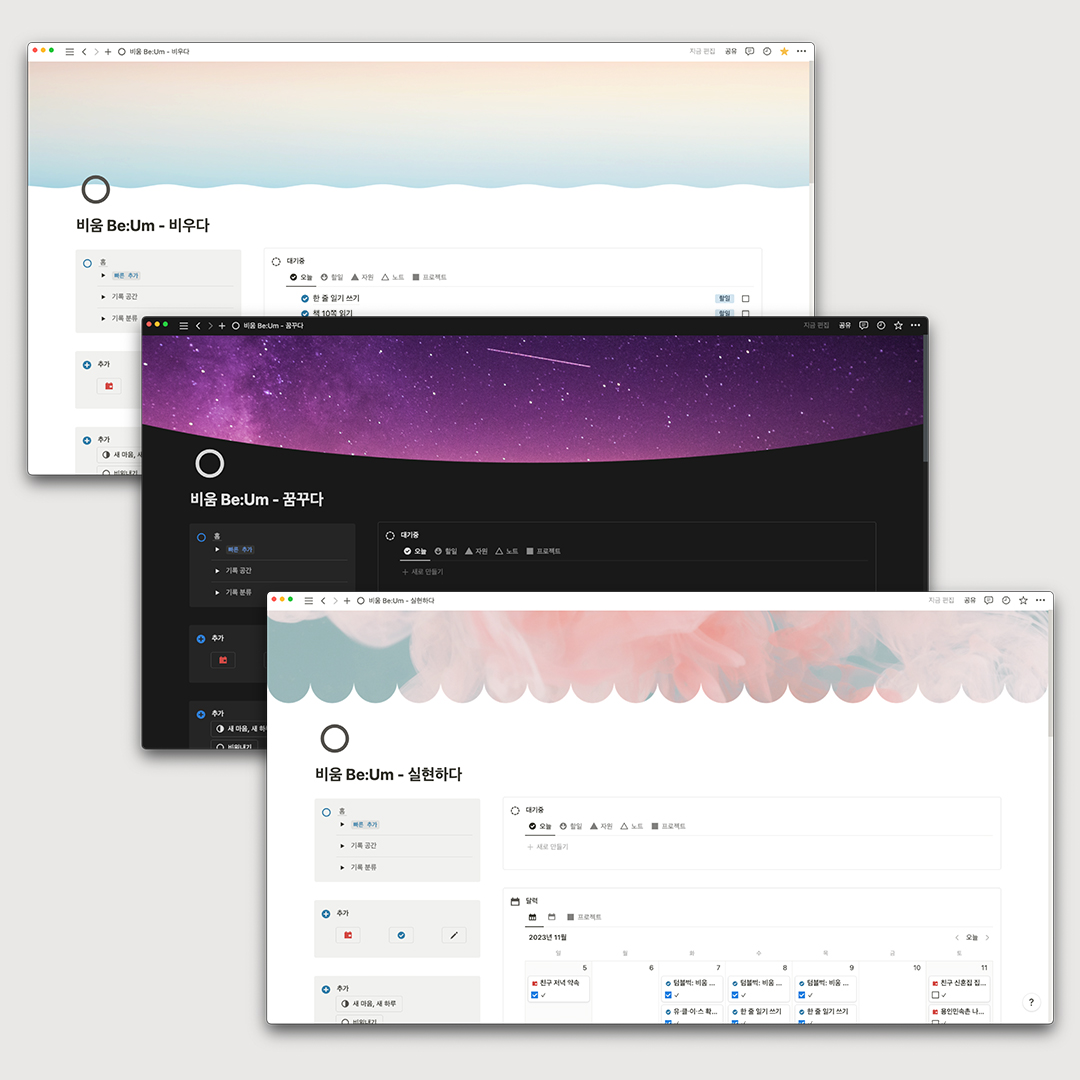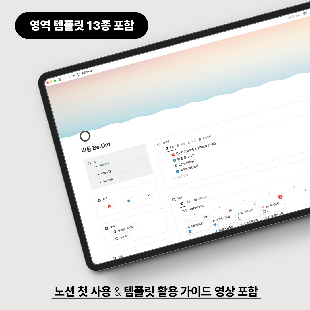 • 제품명 : 노션 올인원 인생관리 템플릿 비움 Be:Um 풀세트