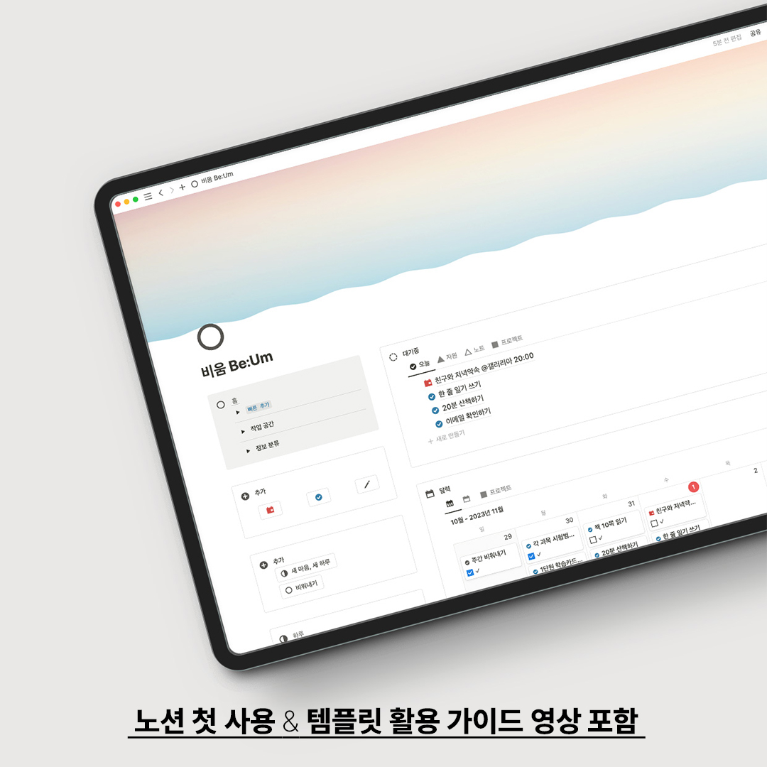 • 제품명 : 노션 올인원 인생관리 템플릿 비움 Be:Um 기본세트