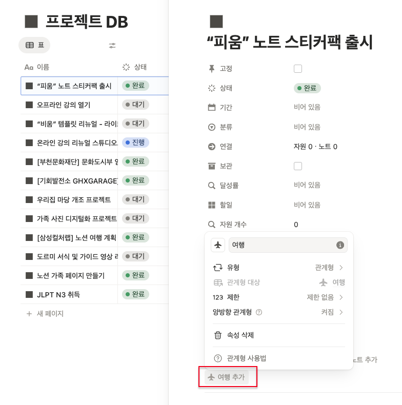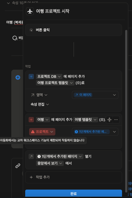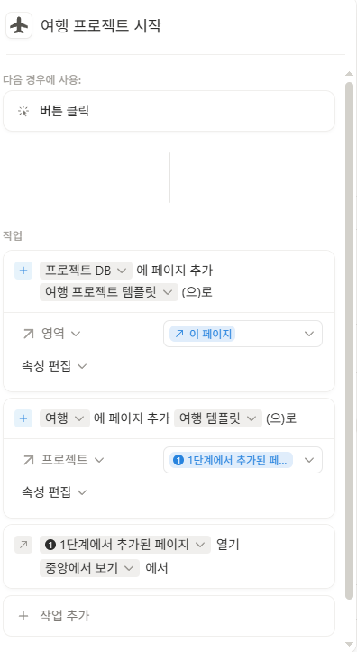 비움 기본형 세트와 여행프로젝트 템플릿을 별도 구매하여, 두개를 연결하려고 합니다.