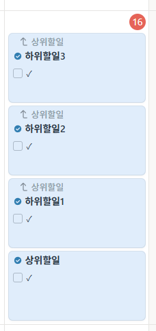 하나의 할일 밑에 하위항목을 넣어 일을 쪼개서 업무를ㅈ하곤하는데