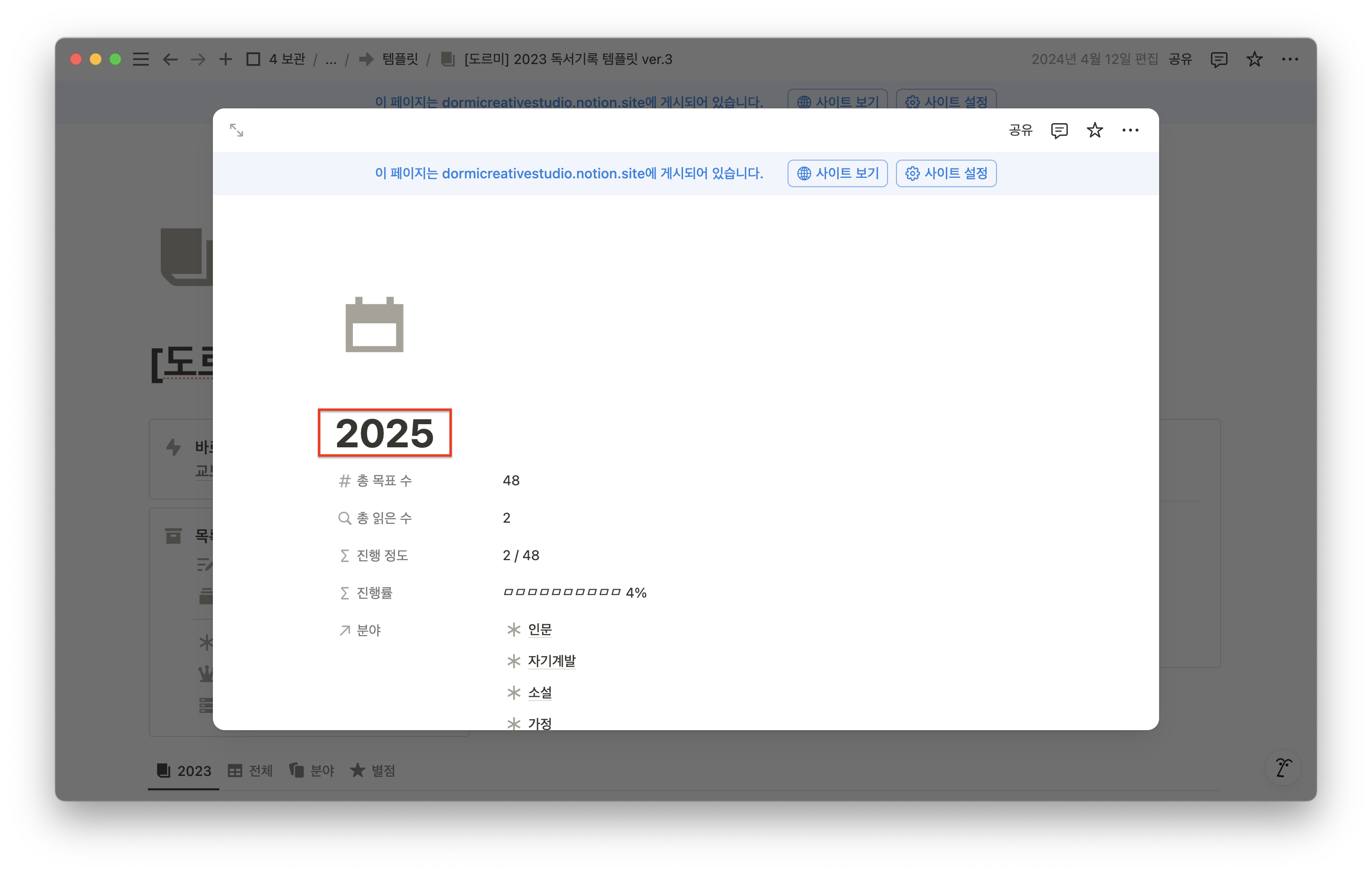 노션 사용에 처음 도전하는데 23년 독서기록 템플릿을 25년에 적용하려면 어떻게 해야되는지요?