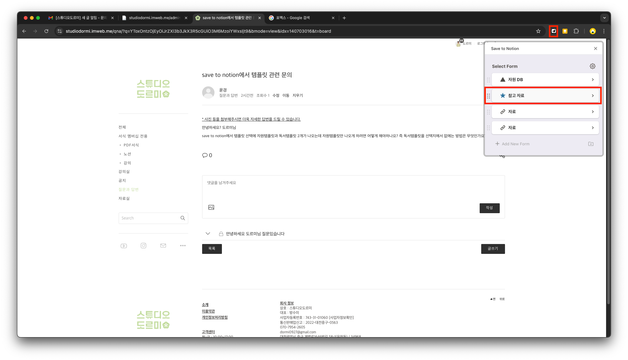 📮 운영시간 외에도 질문과 답변 게시판을 통해 언제든 문의를 남기실 수 있어요. 문의 남기기→