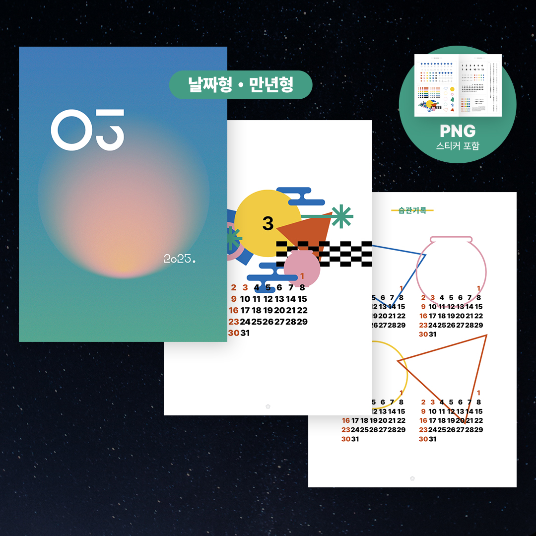 PDF 서식 4개 (날짜형, 만년형) + PNG 스티커 2장 + 빈속지 6종