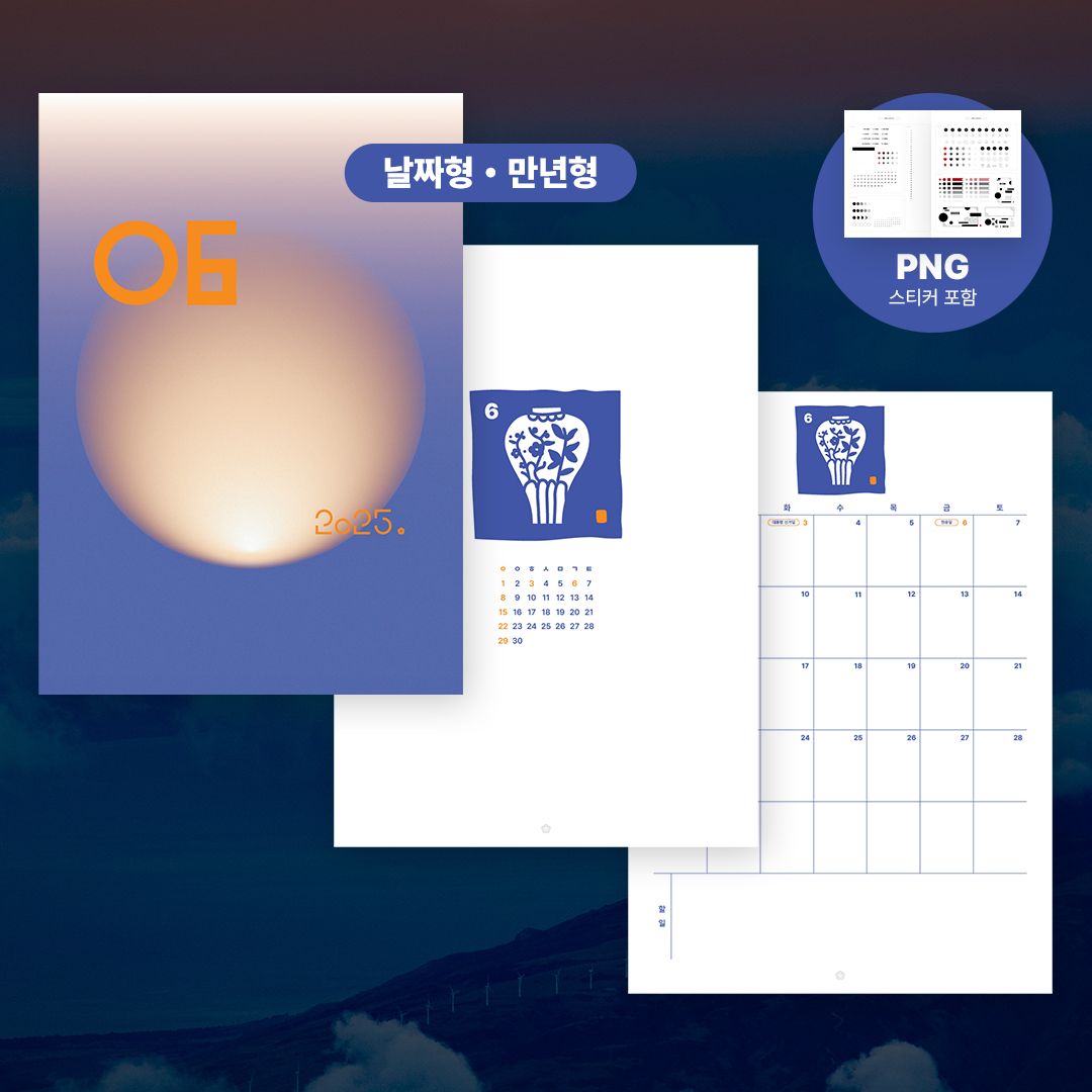 PDF 서식 4개 (날짜형, 만년형) + PNG 스티커 2장 + 빈속지 6종
