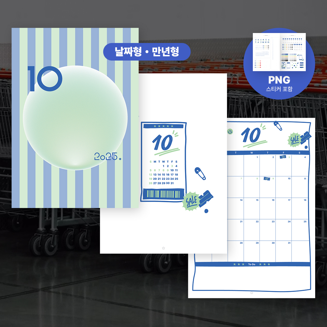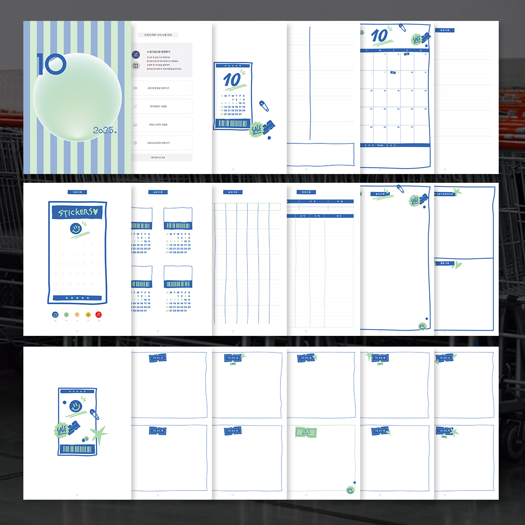 PDF 서식 4개 (날짜형, 만년형) + PNG 스티커 2장 + 빈속지 6종
