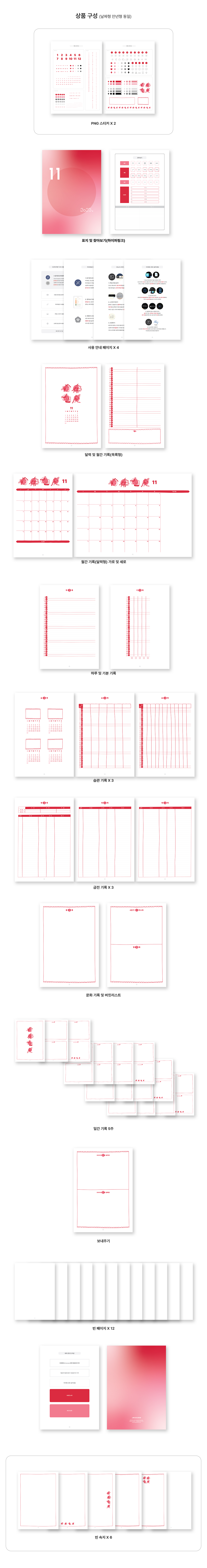 PDF 서식 4개 (날짜형, 만년형) + PNG 스티커 2장 + 빈속지 6종