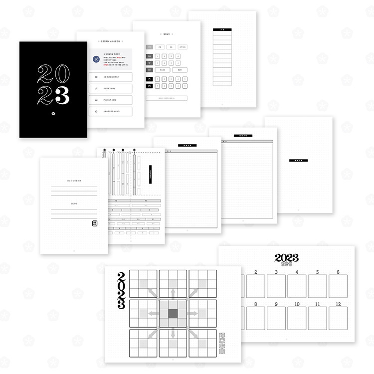 • 제품명 : 2023년 불렛저널 시작하기 다이어리 PDF 서식 5색상 (복숭아, 모래, 멜론, 바다, 먹)