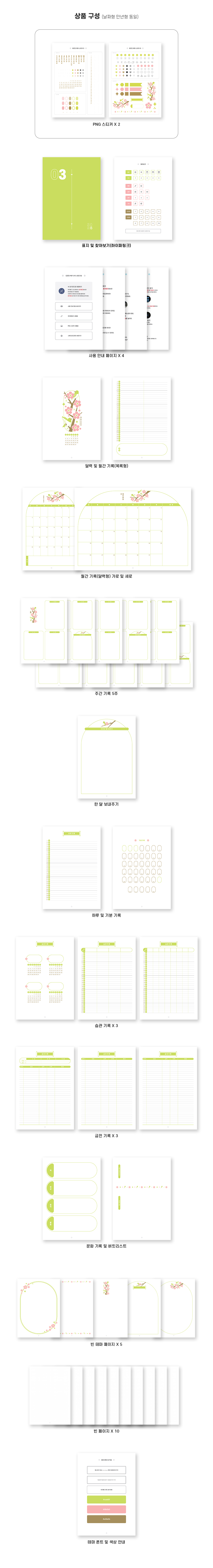 PDF 서식 4개 (날짜형, 만년형) + PNG 스티커 2장