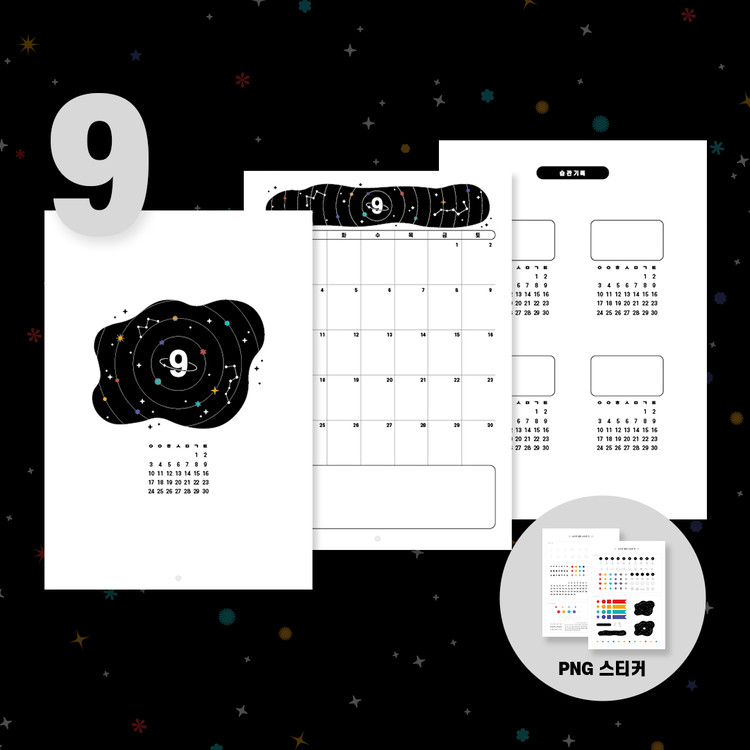 • 제품명 : 2023년 9월 불렛저널 다이어리 소우주 테마 PDF 서식