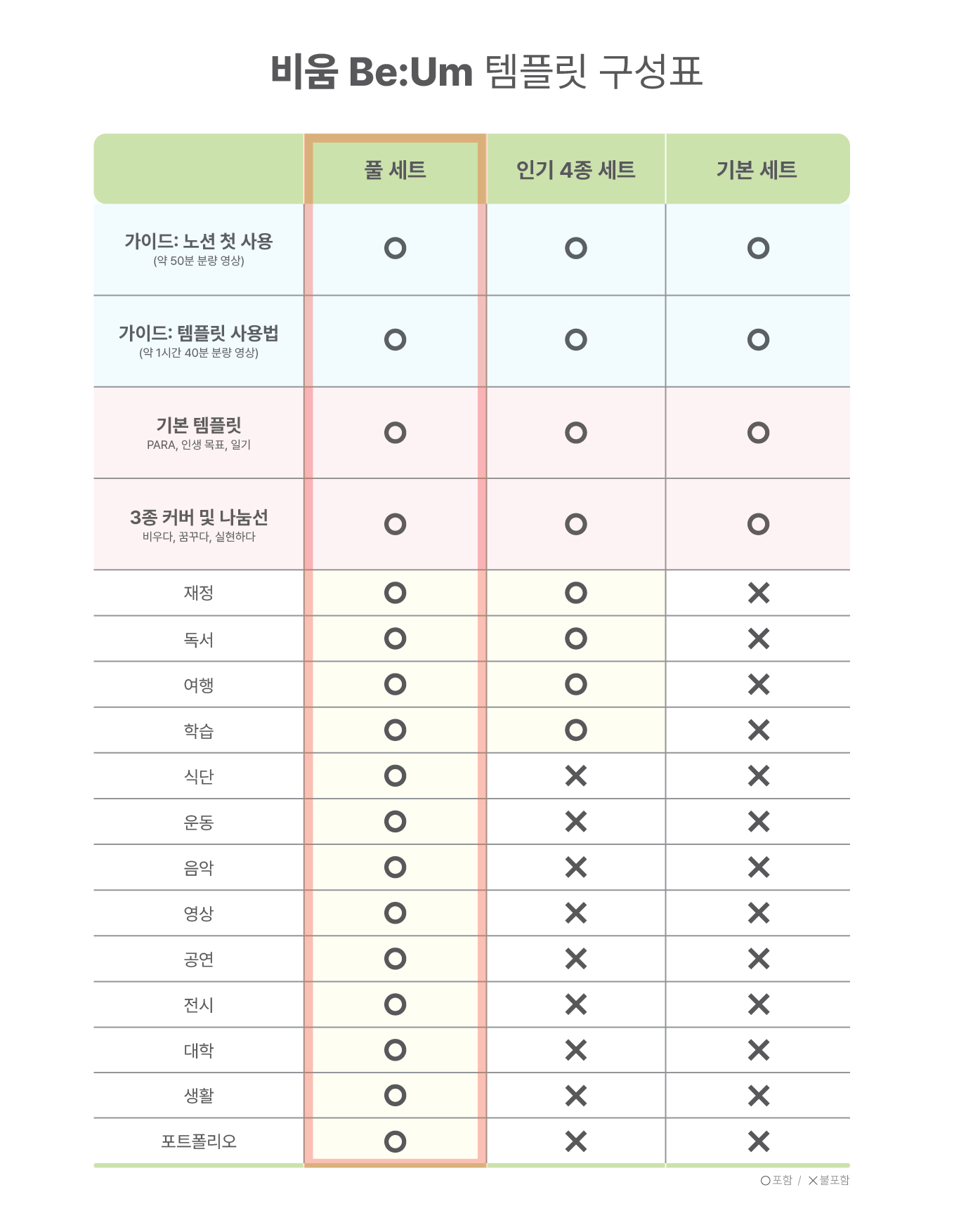 • 제품명 : 노션 올인원 인생관리 템플릿 비움 Be:Um 풀세트