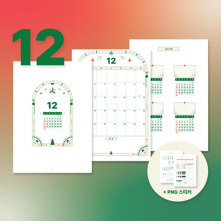 • 제품명 : 2023년 12월 불렛저널 다이어리 크리스마스 테마 PDF 서식