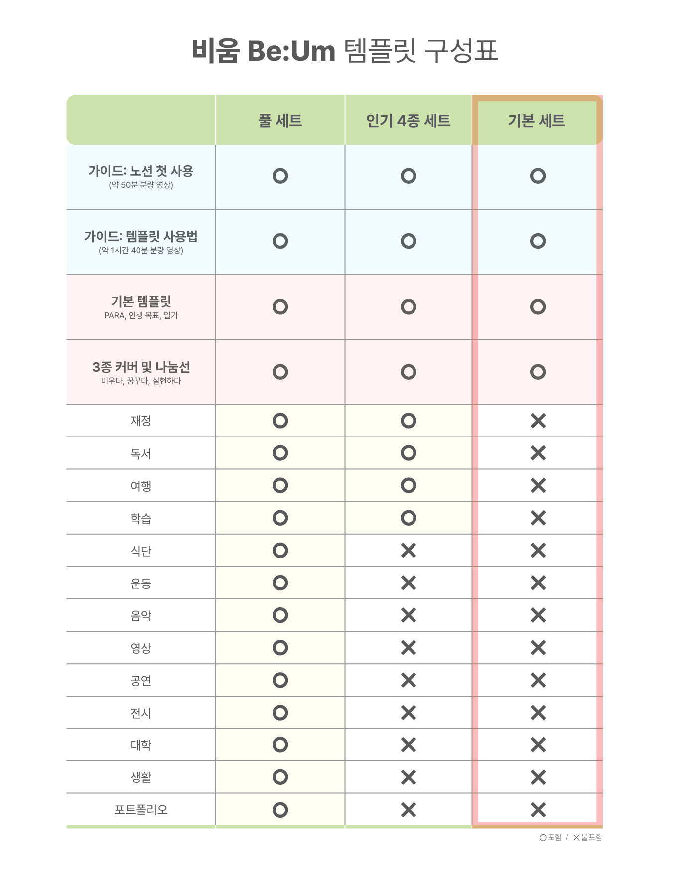 • 제품명 : 노션 올인원 인생관리 템플릿 비움 Be:Um 기본세트