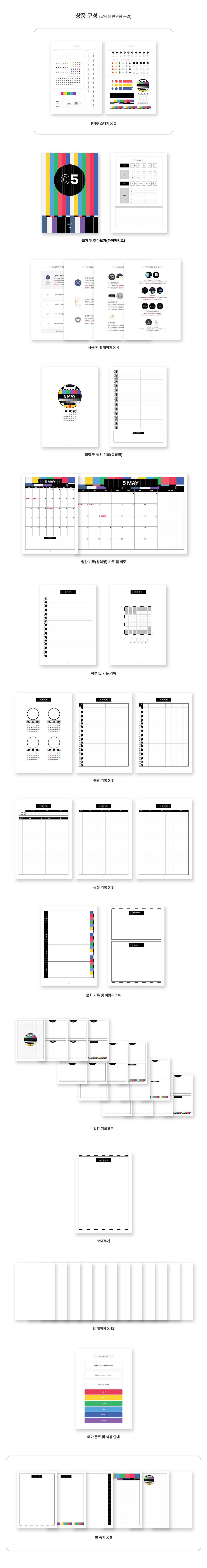 PDF 서식 4개 (날짜형, 만년형) + PNG 스티커 2장 + 빈속지 6종