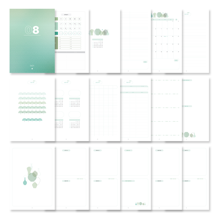 [도자기] PDF 서식 - 2024년 8월 불렛저널 다이어리 | PNG 스티커 및 하이퍼링크 | 아이패드 굿노트 갤럭시탭 삼성노트 속지