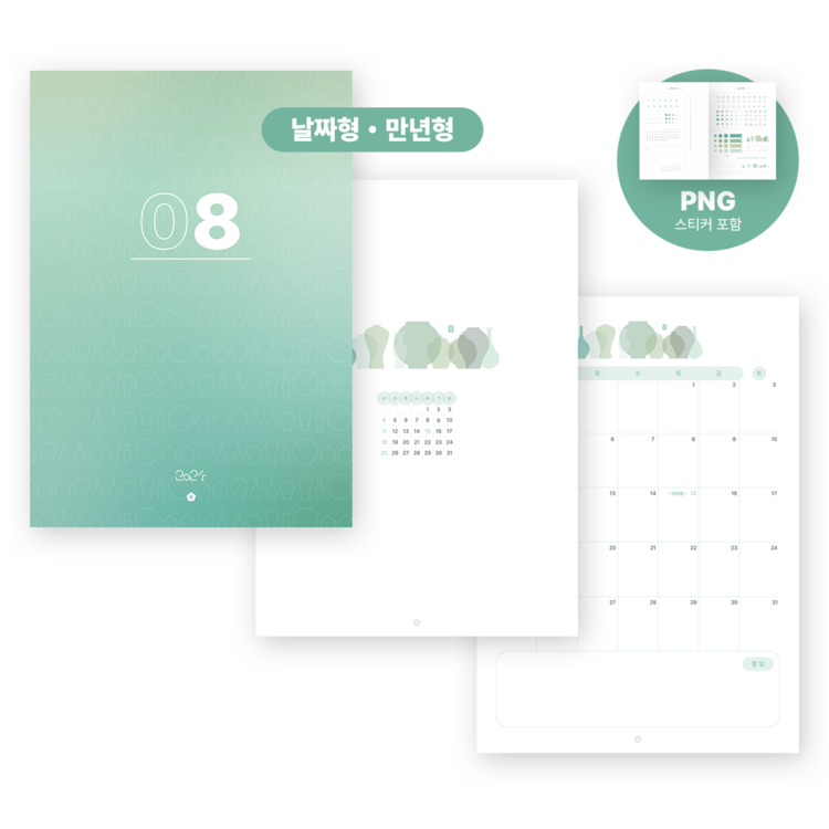 PDF 서식 4개 (날짜형, 만년형) + PNG 스티커 2장 + 빈속지 6종